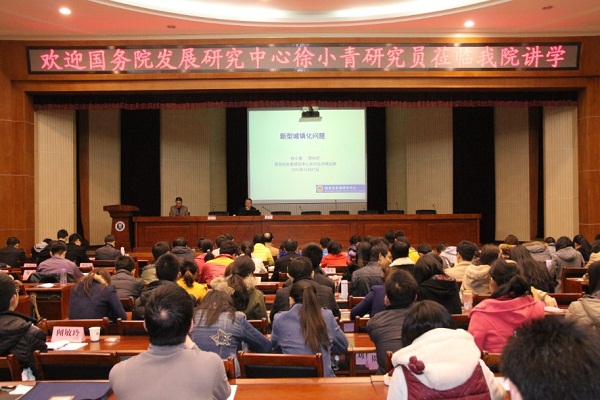 2013年11月26日晚,国务院发展研究中心农村经济研究部徐小青研究员应邀为基地班学生做学术讲座。中国农村研究院院长徐勇教授,人文社会科学高等研究院副院长石挺研究员出席,中农院执行院长邓大才教授主持讲座。