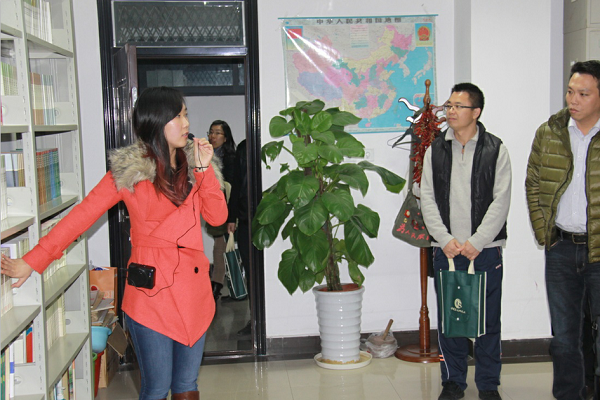 陈伟成部长一行在我院研究人员的陪同下,先后参观了我院文献资料室及展示中心。在文献资料室,陈伟成部长一行翻看了我院各类研究著述、政策咨询报告批示文件、原始调查问卷及地方志等,对我院杰出的咨政服务成果予以肯定。随后,客人们来到展示中心,我院研究人员对百村观察平台和数据库基本情况做了详细的介绍。陈部长一行对我院的平台建设和研究成果给予了高度赞扬,并希望以后能进一步加强顺德区与我院在农村改革方面的交流与合作。