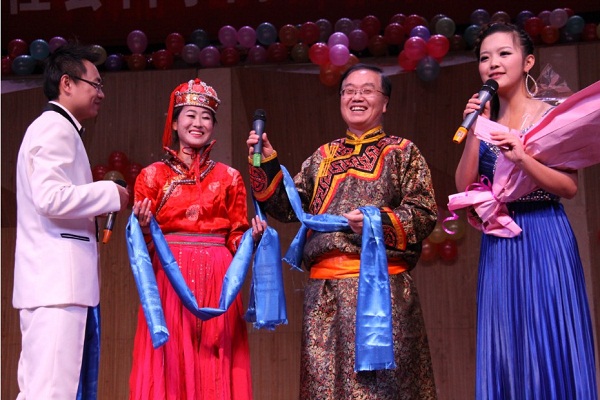 晚会中段,石挺副院长登台与基地班温都拉同学完美演绎了歌舞《蒙古人》,他们还现场用蒙语向大家发出了节日的祝福。接着,在两位炫酷“吉他男”的演奏下,基地班俊男靓女接连演唱了《童年》、《同桌的你》、《那些花儿》和《怒放的生命》四首歌曲。晚会中间还设有抽奖环节,更加调动了现场气氛。