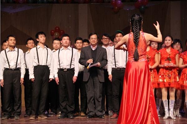 在全场热烈的掌声中,徐勇院长与基地班53位同学共同唱响《玫瑰玫瑰我爱你》及《红莓花儿开》,场面温馨动人,将整场晚会带向另一个高潮。舞蹈《歌舞青春》展现了基地班同学们的激情与活力,令人感受到青春的强烈气息。最后,来自云南的少数民族骨干计划的学生们为大家带来了彝族舞蹈《七月火把节》,展现了具有独特民族风情的美。