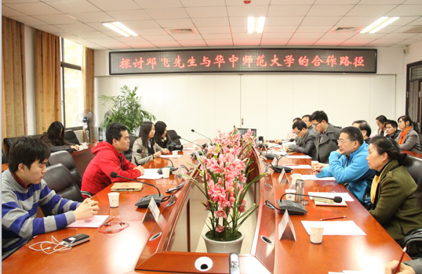 随后,“探讨邓飞先生与华中师范大学的合作路径”座谈会在我院会议室召开。华中师范大学校团委副书记毛铖及人文社会科学高等研究院、中国农村研究院、公共管理学院、社会学院、新闻传播学院等单位的专家学者参与研讨。邓飞先生表示,自己有幸遇上了“互联网时代”,能通过微博等工具将现实中的困境展示出来,从而有力地解决问题。接着,他介绍了自己正在运营的8个公益项目,并阐述了自己的相关心得。最后他希望可以与学界合作,通过专家教授们的聪明才智,集中力量来帮助更多需要帮助的人,让我们的社会更美好,国家更繁荣。座谈会期间,华中师范大学相关学院代表对邓飞先生的公益精神给予了大力地赞赏,也表明了今后渴望合作的心愿。最后,会议在热烈的掌声中结束,会议取得了圆满成功。