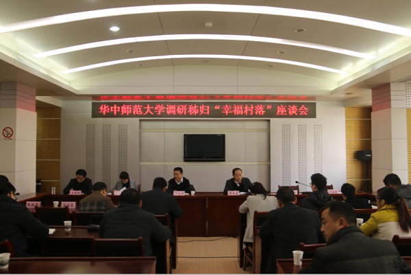 在调研接近尾声时,调研组与秭归县主要领导和相关职能部门负责人举行座谈。双方分别就“幸福村落”建设的创新做法、下一步发展思路及建设理念交换了看法,重点就村民自治有效形式、农村治理体系和治理能力的现代化、农村综合发展等领域展开深入探讨交流。邓大才教授高度评价了秭归县“幸福村落”建设,并指出其五大创新之处:一是村民自治落地;二是治理体系完善;三是农村综合发展平台;四是践行“群众路线”的新线路;五是破解“三农”问题的钥匙。同时将秭归模式概括为“两级自治、分类治理、多个中心”。同时,与会领导干部对各自负责的相关工作进行了简要汇报,认为从邓大才教授在实地走访时提出的建议和会上的发言中得到了深度启发。他们希望调研组深入总结“幸福村落”创建在政策和理论层面的意义,更希望对“幸福村落”发展面临的问题提出更多、更好的建设性意见。