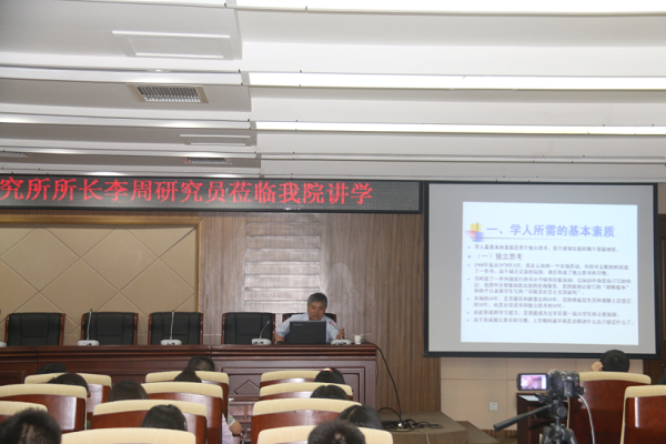 李周所长紧密结合自身学术研究经历,以“学人的素质、能力与追求”为主题,围绕研究者所需要的“基本素质与基本能力,以及学人如何确立和实现自我追求”等三个方面展开了详细介绍。