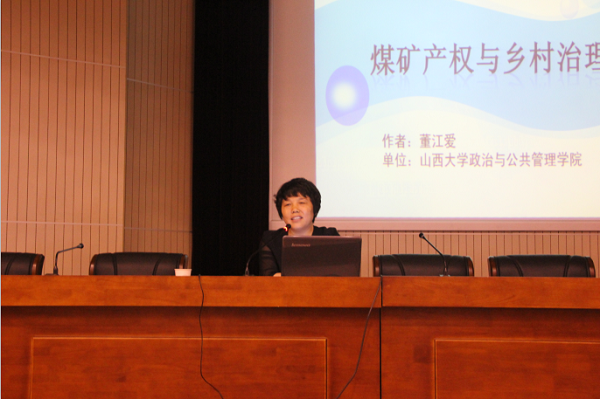 2014年6月9日上午,山西大学政治与公共管理学院董江爱教授应邀为基地班同学作主题为“煤矿产权与乡村治理”的学术讲座。中国农村研究院郝亚光副教授主持了此次学术讲座。