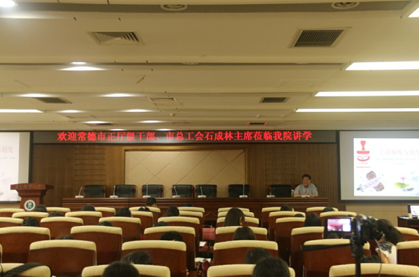 2014年6月19日上午,常德市正厅级干部、市总工会石成林主席莅临我院,做了主题为“官员腐败与制度”的学术讲座。中国农村研究院执行院长邓大才教授主持了讲座,中国农村研究院院长徐勇教授等出席了此次报告。