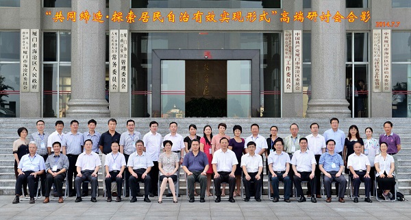 2014年7月7日至8日,由华中师范大学人文社会高等研究院·华中师范大学中国农村研究院共同主办的“探索居民自治的有效实现形式高端研讨会”在厦门市海沧区召开。民政部基层政权和社区建设司、全国人大常委会法律工作委员会、福建省民政厅等主管部门以及厦门市、海沧区等当地相关领导莅临出席本次会议。来自大陆、香港、澳门、台湾、新加坡等高校、科研机构等数十位专家学者汇聚一堂,举行了为期2天的 “共同缔造·居民自治的有效实现形式高端研讨会”。