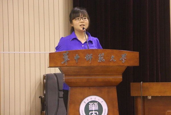 最后,2013级肖静可同学和2014级郑露露同学作为基地班新老生代表先后发言。肖静可告诫新同学们要耐得住寂寞,经得起考验,专注学术研究;郑露露结合暑假调研经历解读了自己对基地人才培养模式的理解,鼓励全体新同学们一起携手,迎接即将拉开帷幕的基地生活。