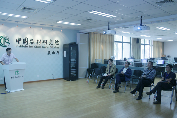 金福林一行首先来到学院资料中心,仔细翻看了整齐陈列的学术著作、政策咨询报告和农村调查问卷等,对中国农村研究院在学术研究与智库作用方面取得的成就赞叹不已。接着,来宾们在展示中心听取了我院研究人员对“百村观察”项目和院属各大研究平台的情况介绍。随后,客人来到村庄原始档案室,对我院保存完整的村史资料表示赞赏。