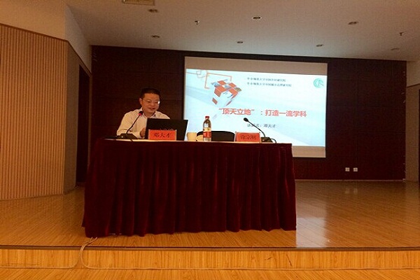 2014年10月21日下午,中国农村研究院执行院长邓大才教授受江西师范大学梅国平校长邀请,赴该校作了主题为“顶天立地,打造一流学科”的专题讲座。江西师范大学党委书记田延光、校长梅国平,副校长聂剑、涂宗财,纪委书记周晓朗以及各学院院长、主管科研工作副院长、科研秘书等200多人聆听了讲座。