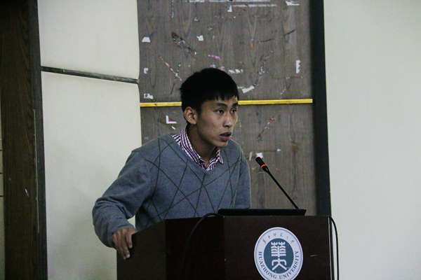何骏同学首先阐述了有关“农民抗争”的文献研究现状,继而详细讲述了凤凰湖村村民对于恒丰板业公司排污造成的村庄环境破坏进行抗争的详细过程。他认为,农民环境抗争受政府、村委、村民、企业、社会等多方主体影响;同时,企业整改成效和政府处理方式对于事件升级具有重要作用。