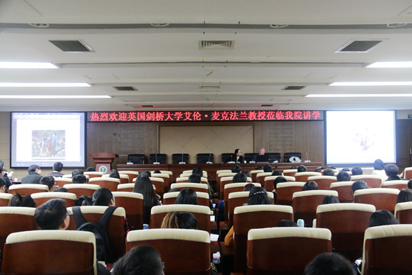 2014年11月12日晚,应中国农村研究院的邀请,英国剑桥大学、欧洲研究院院士,国王学院著名社会人类学家、历史学家艾伦·麦克法兰教授在逸夫国际会议中心报告厅为中国农村研究院基地班全体学生做了题为“如何从事田野调查”的专题讲座,黄振华博士主持讲座,杨嬛、张晶晶博士担任翻译。