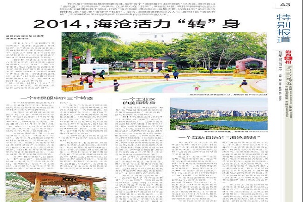 编者按:近日,我院指导的地方改革持续引发媒体关注报道。继2015年1月5日《中国青年报》头版头条《海沧:一场静悄悄的革命》、1月6日《人民日报》头版《从人民中汲取改革智慧——四论在新起点上乘势而上》提到“在福建,基层政府从‘替民当家大包大揽‘向倡导‘共同参与’转变,提高了基层治理水平”后,再次为“美丽厦门,共同缔造”点赞后,1月8日,《人民日报》第六版在回顾全面深化改革年社会体制改革经验的《共建共享,增进福祉》一文中,以海沧区构建与百姓“共谋共建共管共评共享”模式为典型案例,再次肯定了我院与该地合作推进的社会治理改革创新经验。
