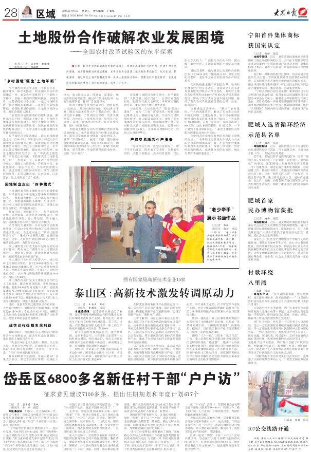 2、《大众日报》:土地股份合作破解农业发展困境——全国农村改革试验区的东平探索
