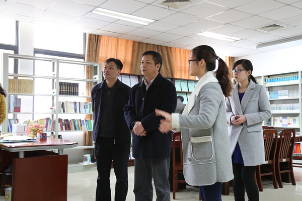 鲁小鹏一行首先来到学院资料中心,仔细翻阅学术著作和咨政报告,浏览县志收藏,对我院的研究成果予以了高度肯定,表示受益良多,希望能购买并认真研读我院历年的《中国农村资政报告》书系。在展示中心,来宾们对我院地方研究取得的丰硕成果和“中国农村发展智库平台”建设情况高度称赞。鲁副秘书长在参观村庄原始资料室后,情不自禁地赞叹其为宝库、宝藏,希望将清远的珍贵资料也收集于此处。