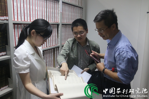 何教授首先来到学院资料室,在讲解人员引导下翻阅了文献著作、咨政报告、地方志等资料,他对基地成立以来所取得的成就给予了高度评价,称赞中农院不愧为中国农村研究第一智库。在展示中心,讲解人员为何教授详细介绍了我院地方研究成果和“中国农村发展智库平台”。在村庄档案室,何教授浏览了部分保留完整的村庄档案,对档案资料的规范化管理表示肯定,相信中农院凭借扎实学术品格和功能丰富的数据库智能系统一定可以取得更大的成就。