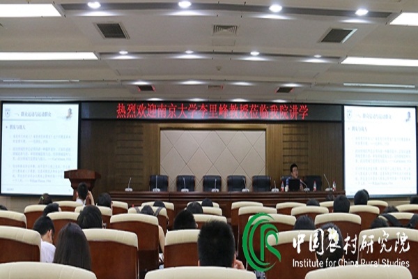 李教授首先以薄一波对“群众运动”的一段概述为切入点,引出了西方的社会运动理论和有关中国群众运动的研究,并将西方社会运动与中国的群众运动进行对比,他指出中国的群众运动不同于西方的社会运动,要关注群众运动与乡村治理的关系,理解农民的行为逻辑。第二,李教授以1945-1976的“土地改革”为例,讲述了中国的群众运动和运动群众,指出“群众运动”之形成,须以“运动群众”为前提,同时群众运动的开展需要“区分敌我”,在国家的动员中,使乡村精英和乡村民众积极参与到乡村治理的过程中来。第三,李教授以群众运动中的行动逻辑为重点,讲述了党治国家、基层精英、乡村民众这三个主体在群众运动的行为逻辑。他认为国家权力运行必须以物质激励、宣传口号、情绪调动、典型示范这四个方面为手段;政治精英同时扮演着政治人(国家意志的执行者)、社会人(社区利益的维护者)、经济人(自身利益的追逐者)的三重角色;乡村民众对党和国家形成了一种“组织性依附”,同时通过各种组织表达自己的不满、利益诉求和政策主张。第四,李教授从动态社会结构中出现的偏差与纠偏、运动式乡村治理的功能、行政与政治关系这三个方面进行分层讲解,阐述了群众运动与乡村治理的关系。在总结部分,李教授谈到,第一,在社会变革的动力与社会运行的常态之间,形成了难以消解的矛盾;第二,革命年代与后革命年代之间的延续性,“毛泽东的隐形之手”对运动式风格的影响十分深远。