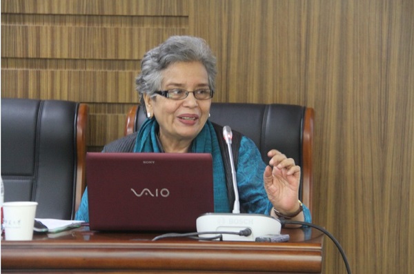 Jayshree Sengupta研究员首先为同学们带来了题为“Empowerment of Rural Women in India”(如何为印度农村妇女赋权)的报告。Jayshree首先描述了印度农村妇女的生活状况。她说,在印度严格的父权制度和种姓制度基础上,农村妇女的地位十分低下,表现在教育、医疗、婚姻、丧葬、土地继承等许多方面。无论是印度教徒还是穆斯林,都存在对女性的性别歧视。