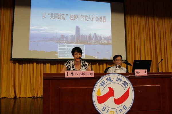 徐勇教授报告的题目是《以“共同缔造”破解中等收入社会难题》。徐勇教授提出,我国已由低收入社会进入到中等收入社会阶段,面临着诸多经济和社会挑战。持续发展与有效治理成为这一阶段的社会主题。造成中等收入社会难题的原因,既有新时期的各种社会转型因素,也与政府治理的“不适应性”高度相关。徐勇教授认为,厦门市新近提出的“美丽厦门·共同缔造”理念适应了社会变化,为破解中等收入社会难题提出了战略性思路和行动方略。