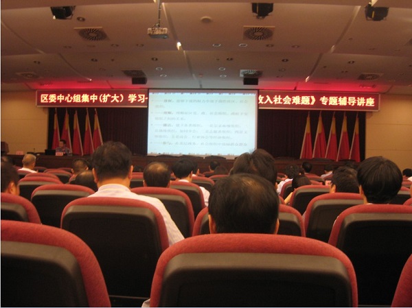 下午3:30,徐勇教授、邓大才教授应邀分别为区委中心组集中(扩大)学习会议作专题辅导报告。徐勇教授从如何通过“美丽厦门·共同缔造”行动破解中等收入社会问题等方面做了深入浅出的阐述。他认为,“美丽厦门”是从不同的厦门人意识中提炼和概括出的“社会最大公约数”,通过这一目标可以最大程度凝聚社会人心,达到社会共识。邓大才教授以案例分析的形式介绍了顺德、深圳等地社会管理改革的经验。他建议海沧在“美丽厦门·共同缔造”行动中,要以分权、理顺、激活和参与为路径,注重培育民众的参与、责任和合作精神。