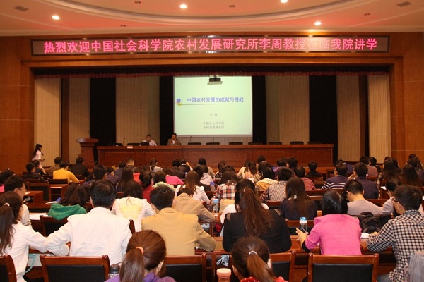2013年10月29日下午,中国社会科学院农村发展研究所所长李周研究员应邀为调查研究基地班做学术报告。中国农村研究院院长徐勇教授出席,副院长邓大才教授主持了学术报告。
