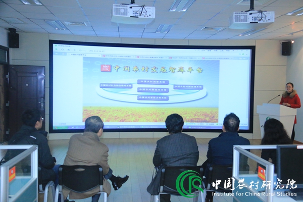 在学院展示中心,讲解员以陕西省张家河村实例,对中国农村调查系统、村情观测系统、智能决策系统及社会动态跟踪系统等子系统构成的智库平台进行了一一演示。就数据搜集、功能分析、成果展示等项目,陈主任一行现场与讲解员进行了互动交流,对我院智库平台的集成化建设十分赞许。