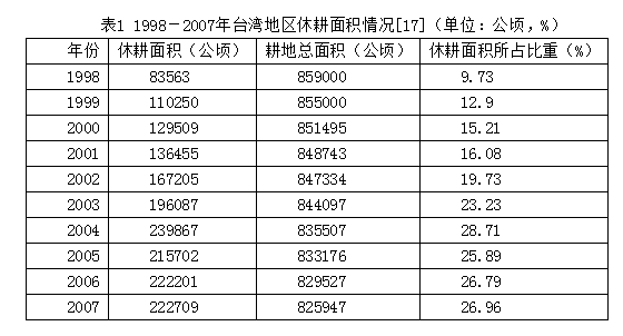2008年台湾面临经贸全球化、自由化、市场化的冲击。部分原因在于台湾农业以小农经营为主,农产品缺乏竞争力以及存在“不足性过剩”等问题。农业经营者高龄化、农业劳动力老年化,有知识、有技术的年轻人后继无人,再加上地块分散,农户经营规模有限,致使农业经营效率相当低下,休耕面积也越来越多。为了扩大经营规模、推进企业化经营、提高整体产业竞争力,台湾决定实施“小地主大佃农”的农地改革政策。[③]